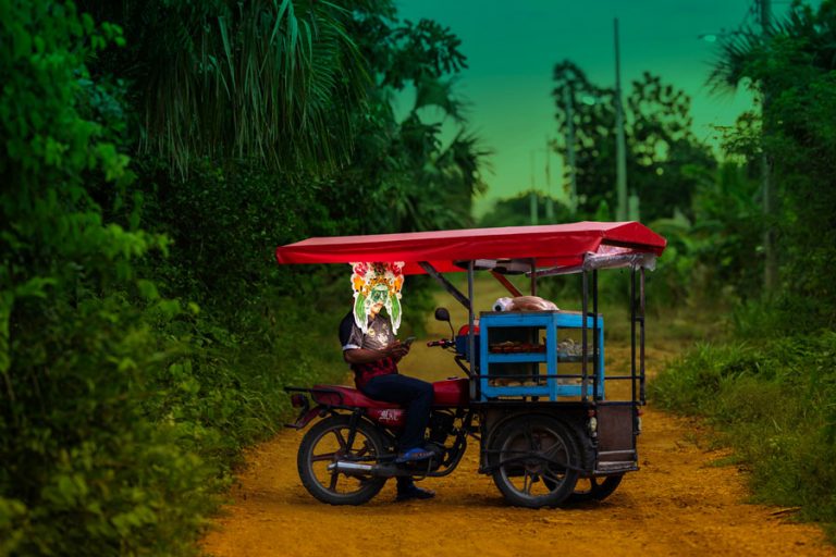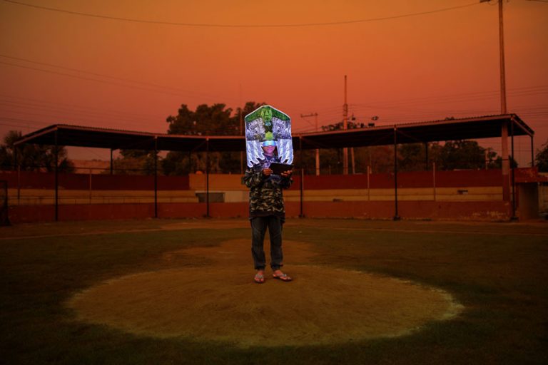 As part of the National System of Creators (Sistema Nacional de Creadores), Sánchez Renero’s project is an exercise in horizontal collaboration, working with local artists and collectives to develop visual interventions. This methodology subverts the power dynamics between the photographer and the photographed subject, allowing community members to actively participate in the construction of the visual narratives. Among these interventions, the ritual masks stand out, recontextualized as symbolic interfaces between the sacred and the digital.